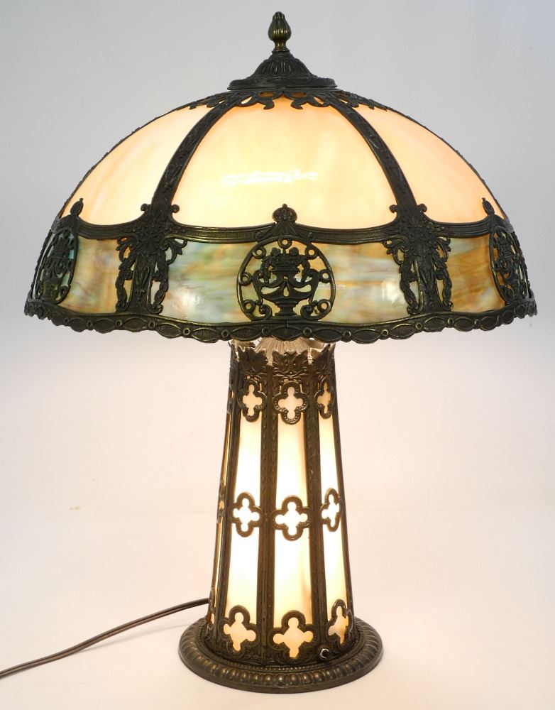 Vintage Cast Metal Caramel Glass Table Lamp with Illuminated Base.
