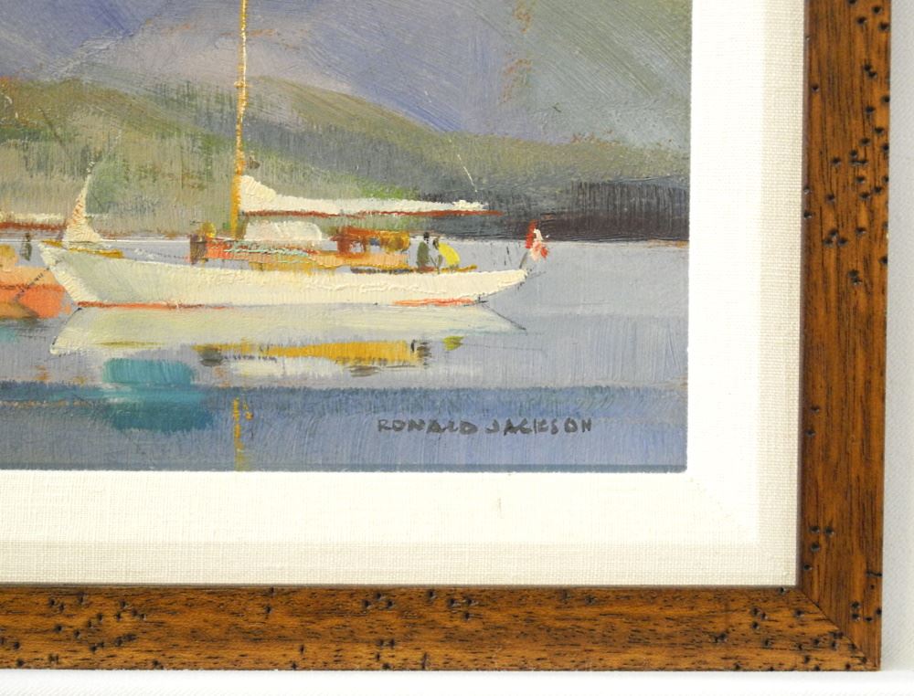 Oil on Board signed Ronald Jackson, 9 1/2" x 13 1/2", "Harbour Scene".