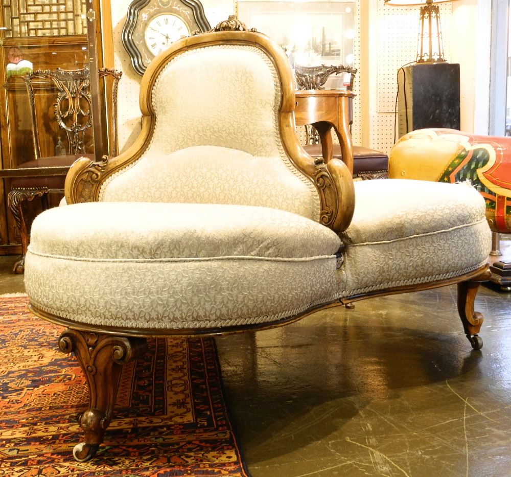 Mid-Victorian Mahogany Conversation Chair, 51" Wide.