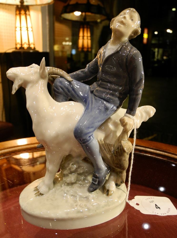 LOT 4 Royal Copenhagen Porcelain "Boy on Goat" Figurine. Estimate: $60 - $100 Sold For: $70 Auction Date: Tuesday, October 25 2022 at 6:00 PM