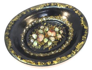 19th Century Papier Mache Dish, Gilt with Inlay, 13 3/4" Wide.