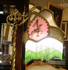 LOT 37 Cast Metal Bridge Lamp with Ornate Silk Shade. Estimate: $150 - $200 Auction Date: Tuesday, October 25 2022 at 6:00 PM