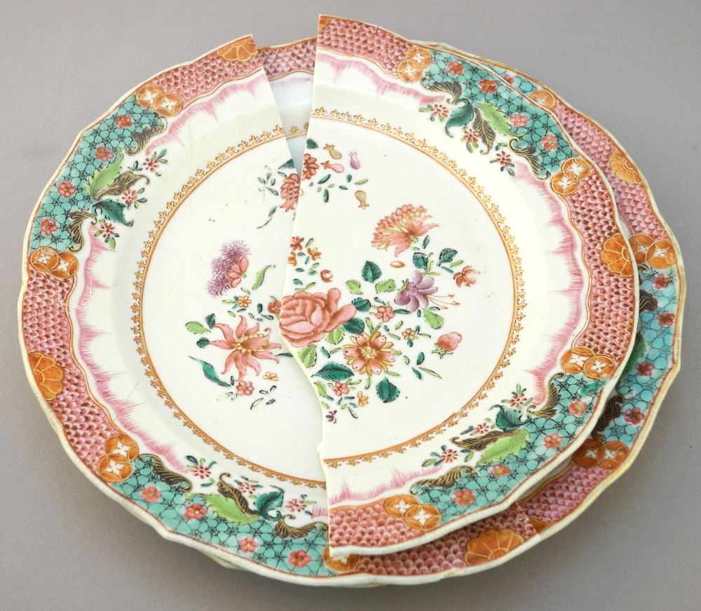 LOT 140 5 Chinese Export Porcelain Plates & Soup Plates, Damaged/ Fragmentary, 9" diameter. Estimate: $200 - $300 Auction Date: Tuesday, October 25 2022 at 6:00 PM