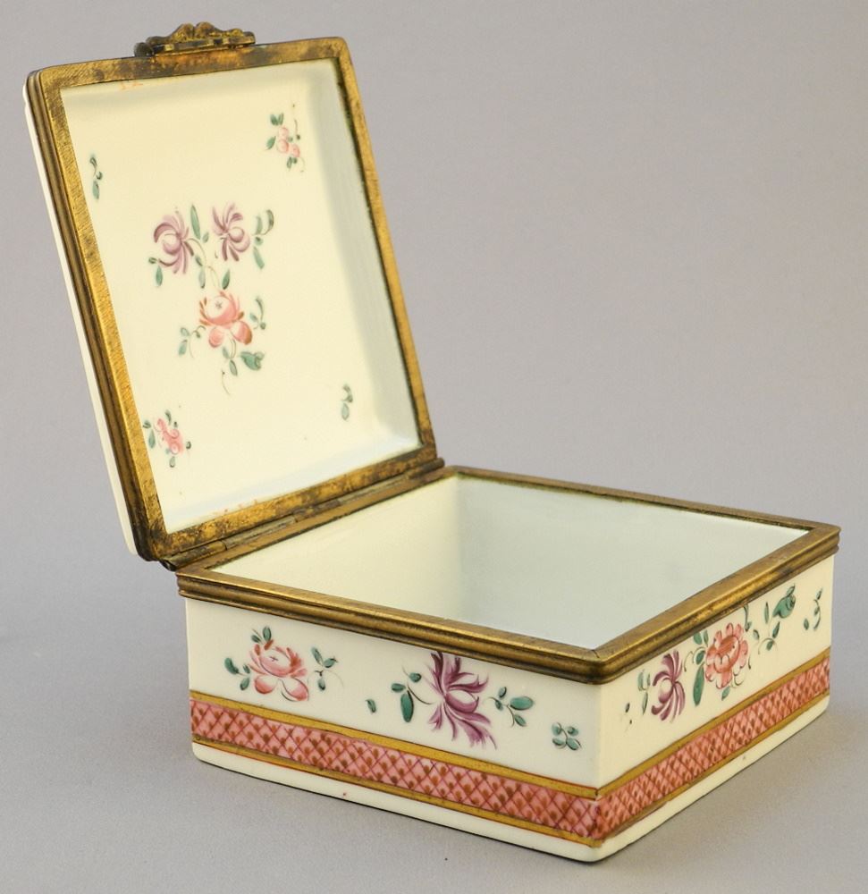 Porcelain Hinged Box, 2 1/4" x 4 1/4" x 4 1/4".