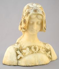 LOT 42 Marble Bust of a Renaissance Maiden, Neck Restored, 9 3/8" wide. Estimate: $100 - $200 Sold For: $100 Auction Date: Tuesday, October 25 2022 at 6:00 PM