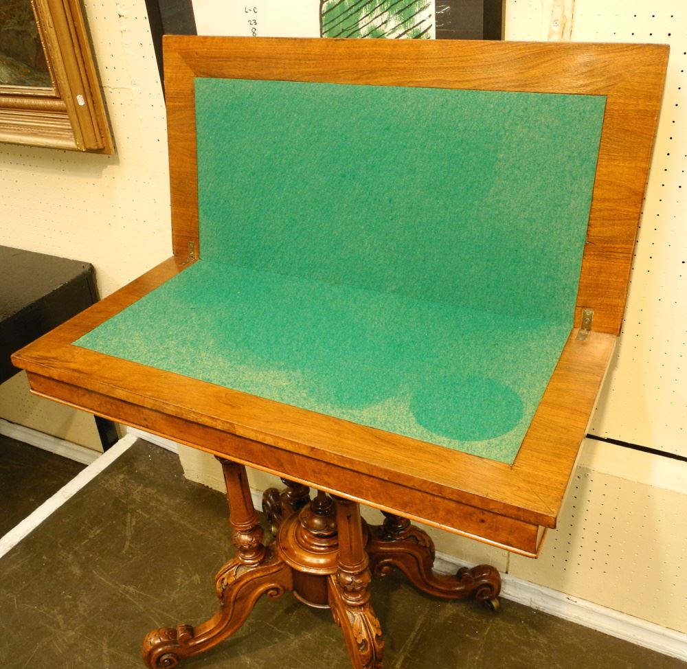 Mid 19th Century Inlaid Walnut Quattro Columnar Games Table, 29 1/2 x 35 3/4 x 17 1/2".