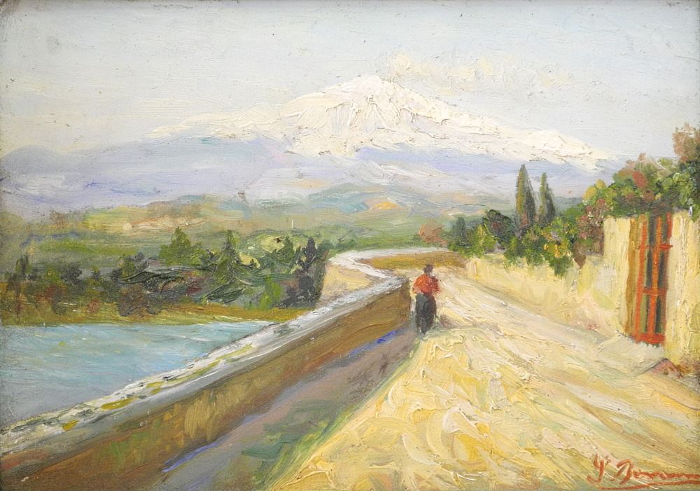 Oil on Board Signed Indistinctly, "Taormina" 7 3/8" x 10 1/2".