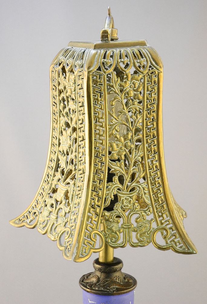 LOT 62 Asian-Style Bedside Lamp With Brass Shade, 16 7/8" H. Estimate: $60 - $100 Auction Date: Tuesday, February 21 2023 at 4:00 PM