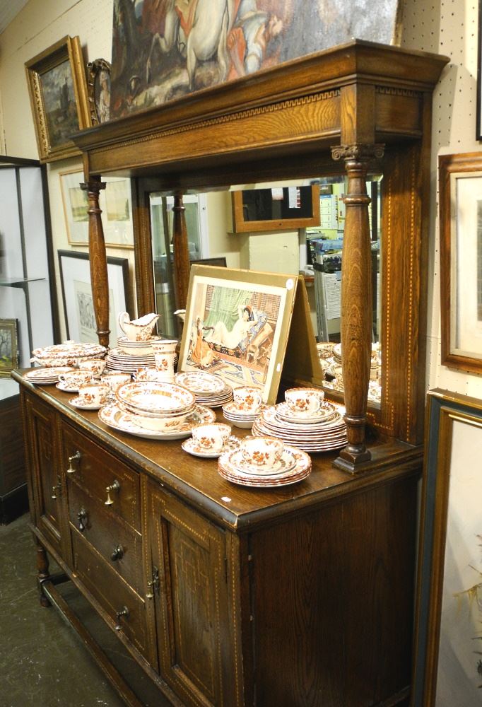 LOT 147 Inlay Oak Mirror Back Sideboard, 72" High. Estimate: $150 - $300 Auction Date: Tuesday, February 21 2023 at 4:00 PM
