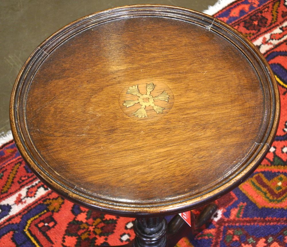 LOT 8 Brass Inlaid Tripod Table, 20" H. Estimate: $60 - $100 Sold For: $60 Auction Date: Tuesday, February 21 2023 at 4:00 PM