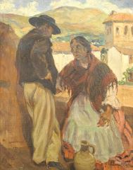 LOT 321 Oil on Canvas Attributed to G. Pangorst, "Pyrenean Peasant & Wife" 22"X17 1/8". Estimate: $100 - $200 Auction Date: Tuesday, February 21 2023 at 4:00 PM