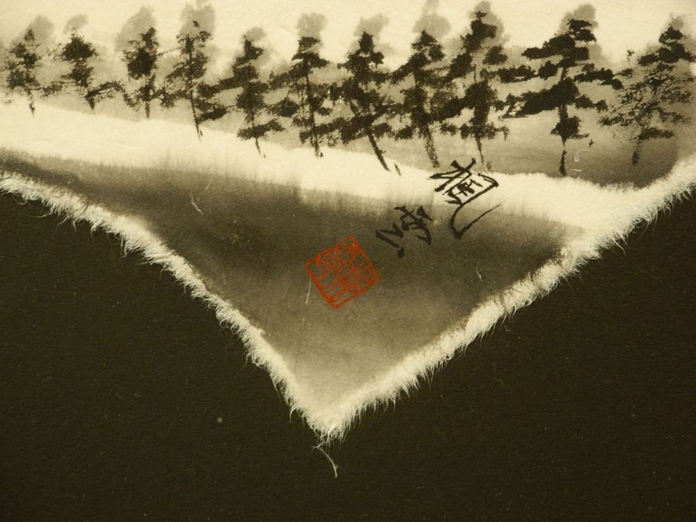 Japanese Fan Painting, "Mt. Fuji" 11 1/2"X20 1/2".
