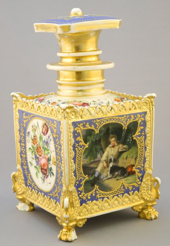 LOT 24 19th Century French Porcelain Covered Bottle, Chips on Feet Noted, 9 x 4 Estimate: $100 - $150 Sold For: $100 Auction Date: Tuesday, February 21 2023 at 4:00 PM