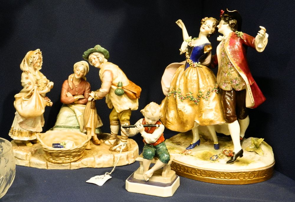 3 Porcelain Figures: 2 Royal Vienna Style/ 1 Capo Di Monte, All As Found largest 10 1/2" High