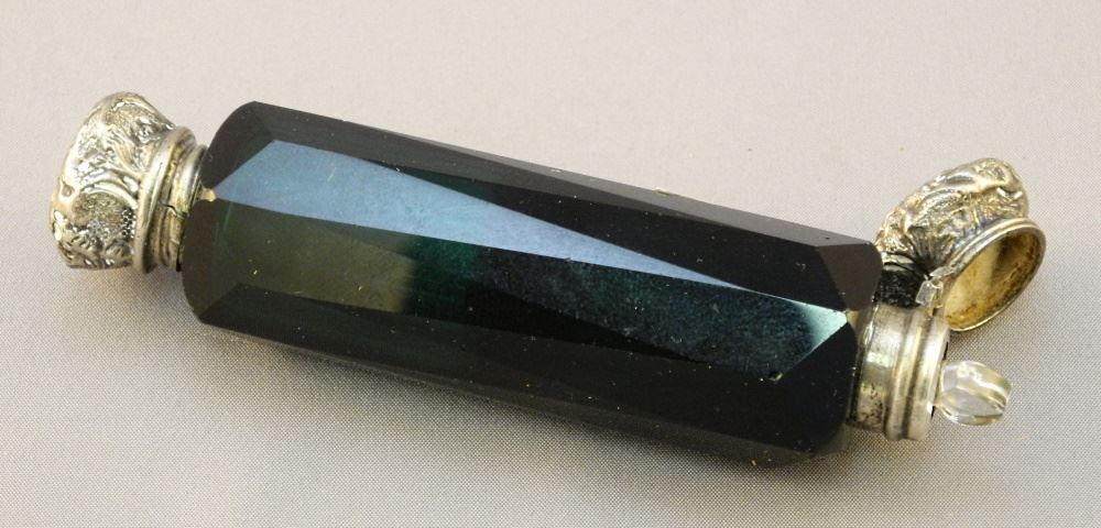 LOT 265 Two Victorian Double Ended Glass Red and Green Scent Bottles with Silver Tops, 4". Estimate: $140 - $160 Sold For: $150 Auction Date: Tuesday, February 21 2023 at 4:00 PM