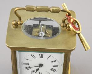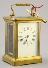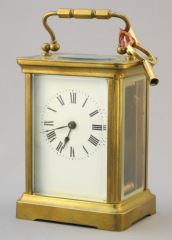 LOT 208 Brass Carriage Clock, 5 1/2 to Handle Estimate: $50 - $100 Sold For: $100 Auction Date: Tuesday, April 18 2023 at 4:00 PM