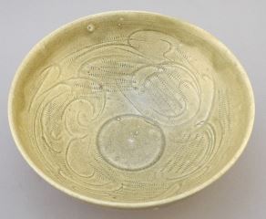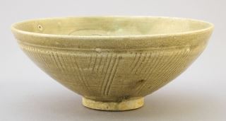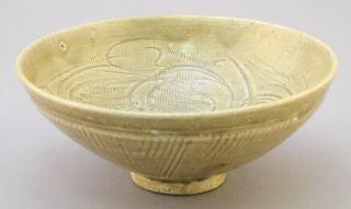 Chinese Carved Celadon Bowl with Jian Ding Seal, 2 1/2" x 6 1/8" diam