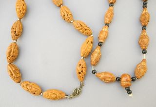 Two Chinese Carved Coquilla Nut Beaded Prayer Necklaces, 21" & 22".