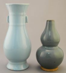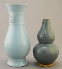 LOT 208 Chinese Blue Glaze Double Gord Vase, 6 7/8"H with another Vase, 9"H. Estimate: $60 - $100 Auction Date: Tuesday, August 15 2023 at 4:00 PM