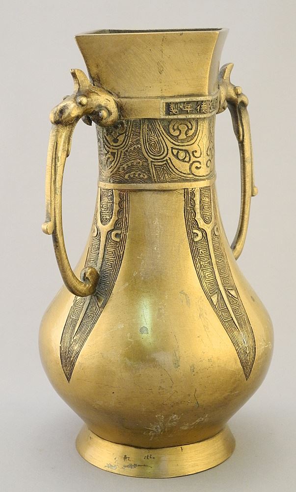 LOT 57 Xuarde Style Copper Alloy Vase, 9 5/8"H. Estimate: $60 - $100 Auction Date: Tuesday, August 15 2023 at 4:00 PM