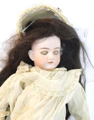 Antique German Bisque Doll with Composition Body & Closing Eyes, marked DEP Germany, 23" Ta
