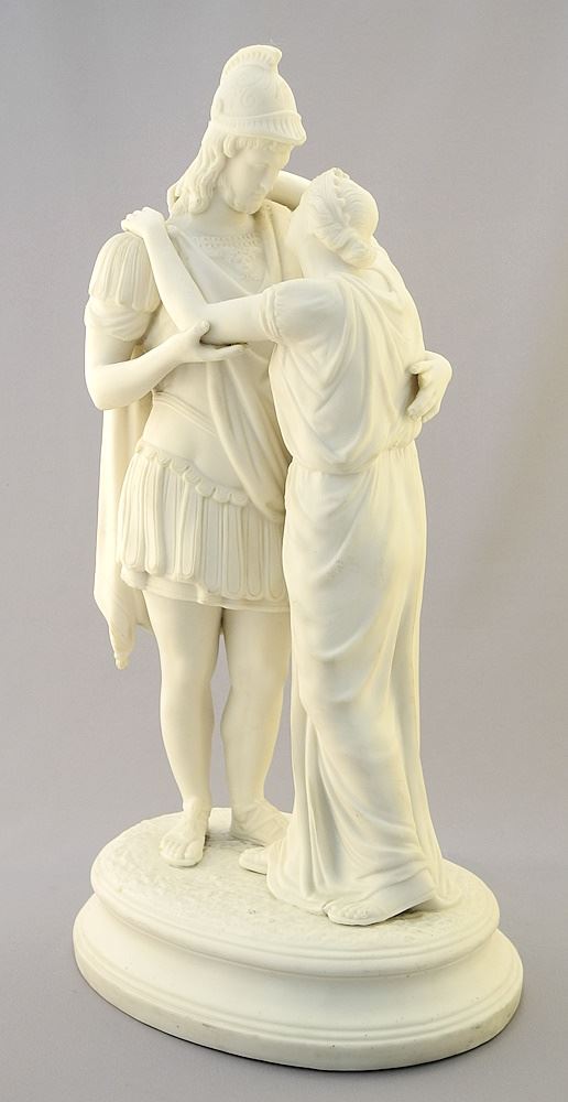 LOT 2 Parian Figure of Renaissance Lovers, 15 3/4"H (one finger missing). Estimate: $50 - $100 Auction Date: Tuesday, August 15 2023 at 4:00 PM