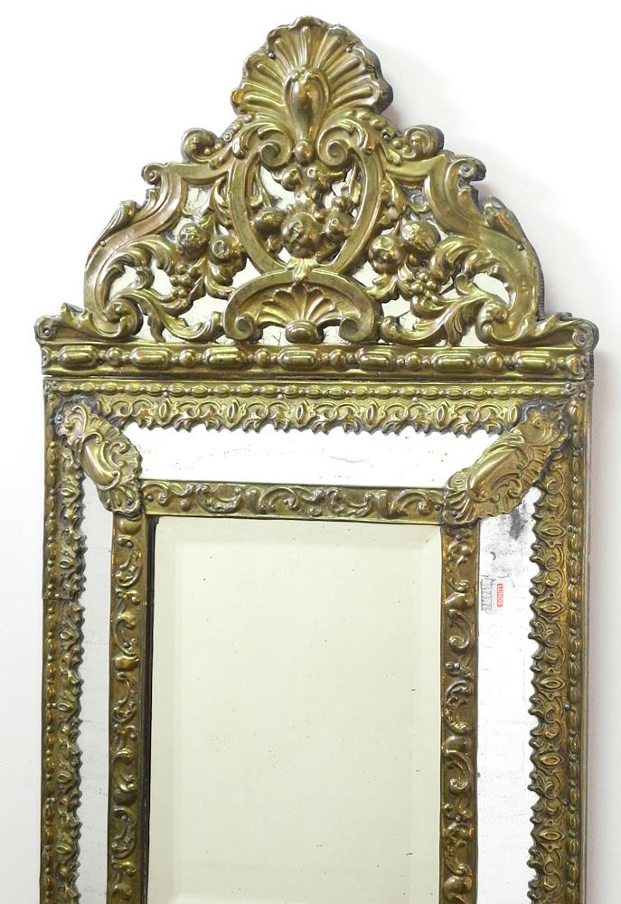 Antique Embossed Brass Stepped Mirror, 23"H.
