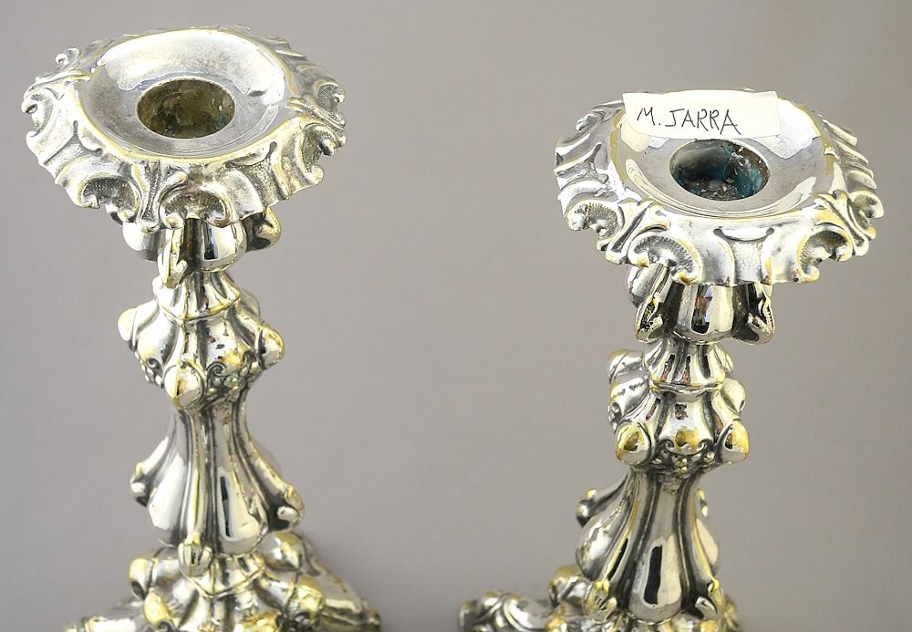 Pair of Silver Plated Candlesticks signed M.Jarra, 11 5/8"H, Rubbed.