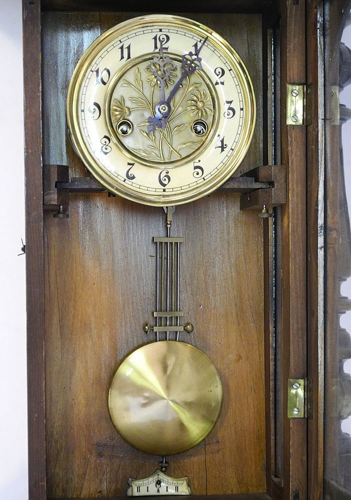 19th Century Scottish Walnut Wall Clock with Key and Pendulum.