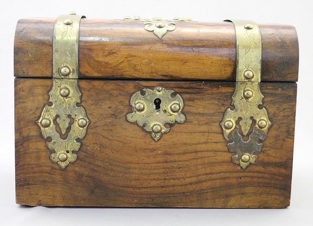 Walnut Brass Bound Tea Caddy, 1860, 9"W.