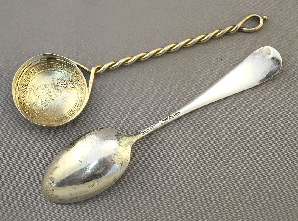 6 Birks Sterling Silver Coffee Spoons (73 grams) and 6 Coin Teaspoons and Tongs, 61 gr