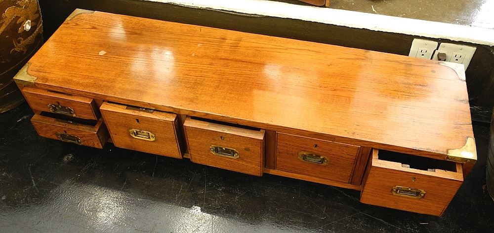 LOT 50 6 Drawer Teakwood Military Cabinet, 41 1/4". Estimate: $100 - $200 Auction Date: Tuesday, August 15 2023 at 4:00 PM