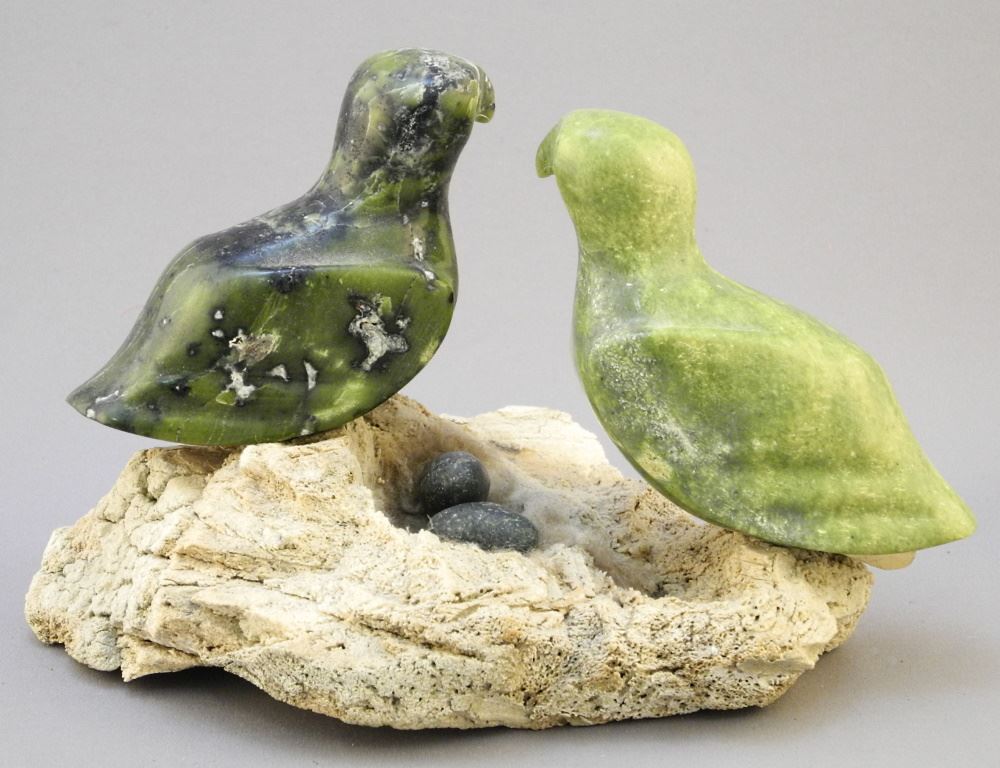 Inuit Whalebone & Stone "Nesting Birds" Sculpture - unsigned, 4 3/4" x 7" x 4 3/4".