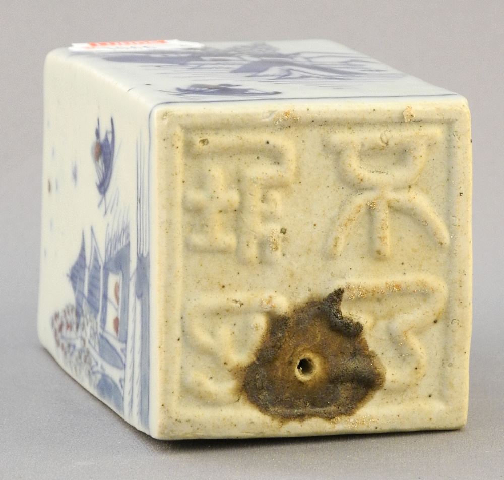 Chinese Blue & White with underglaze Red Porcelain Weight with Embossed. Base