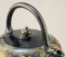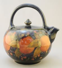 Moorcroft Pomegranate Teapot, Handle Restored, 8"H.