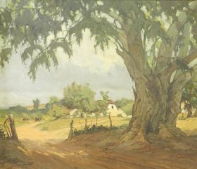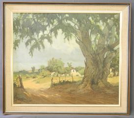 Oil on Board signed Eric Fleischman, 20 1/8" x 23 1/4", "Homestead Cape Flats".