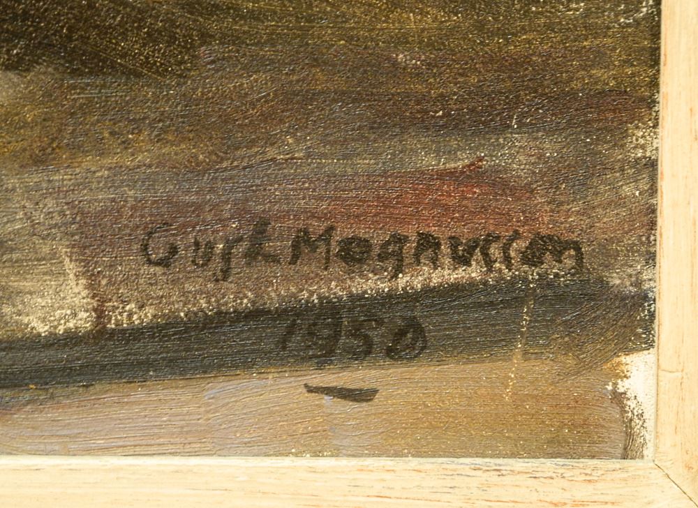 Oil Board Signed Gust. Magnusson 1950, 23 1/2" X 19 1/4", "Boy with Boat".