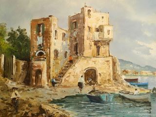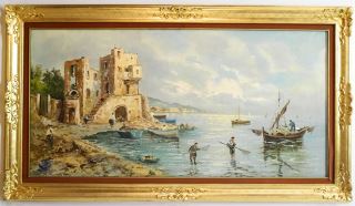 Unsigned Oil on Canvas, 23" x 46 1/2", "Coastal Scene".