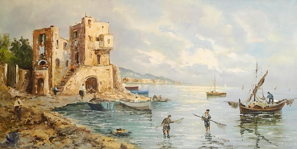 LOT 121 Unsigned Oil on Canvas, 23" x 46 1/2", "Coastal Scene". Estimate: $50 - $100 Auction Date: Tuesday, August 15 2023 at 4:00 PM
