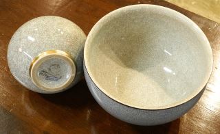 2 pcs of Royal Copenhagen Craquelure Porcelain: Vase (4"H) and Bowl (5 1/4" diam).
