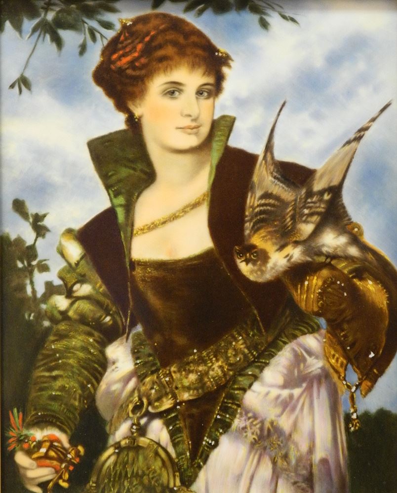Rosenthal Porcelain Plaque after Hans Makart, 9 1/4" x 7 1/4", "Die Falknerin".