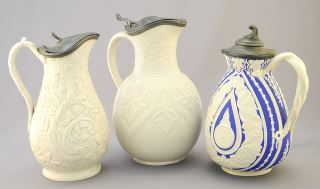 LOT 23 3 Parian Jugs with Pewter Lids: 2 by W.B.Corridge, Cashmere(1867), Tyrol (1864), 3rd unknown (1860) Estimate: $50 - $80 Auction Date: Tuesday, August 15 2023 at 4:00 PM