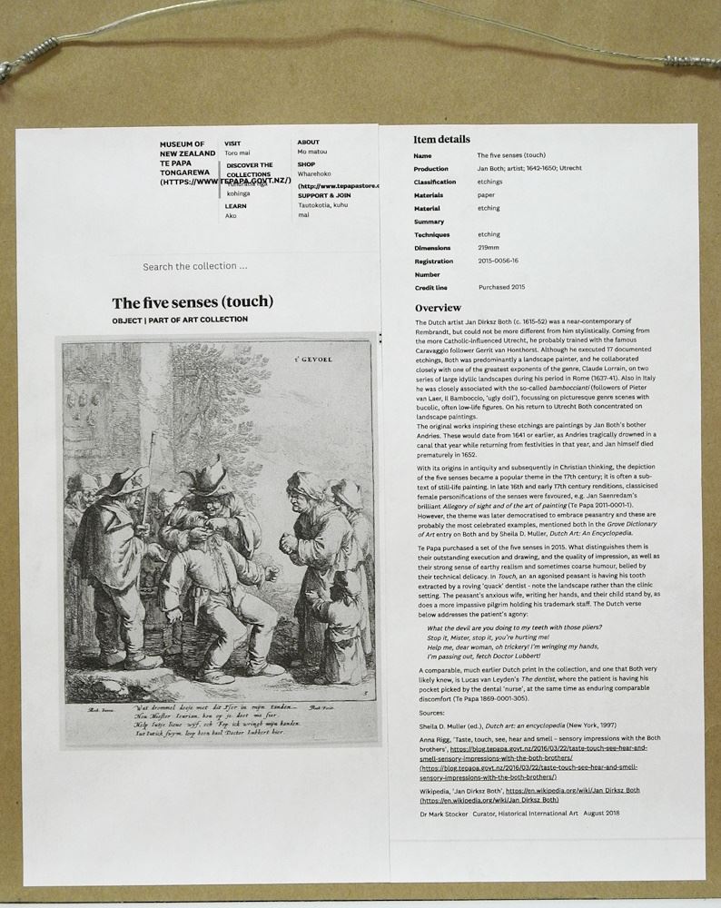 Dental Interest: Colour Etching by Jan Both, 8 3/4" x 6 7/8", "The Five Senses" (touch).