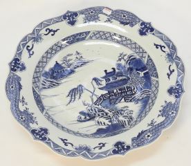 LOT 34 Chinese Export-Style Blue & White Porcelain Barbed Dish, Irregular Foot Rim, 15 3/4"d. Estimate: $200 - $400 Sold For: $100 Auction Date: Tuesday, October 17 2023 at 4:00 PM