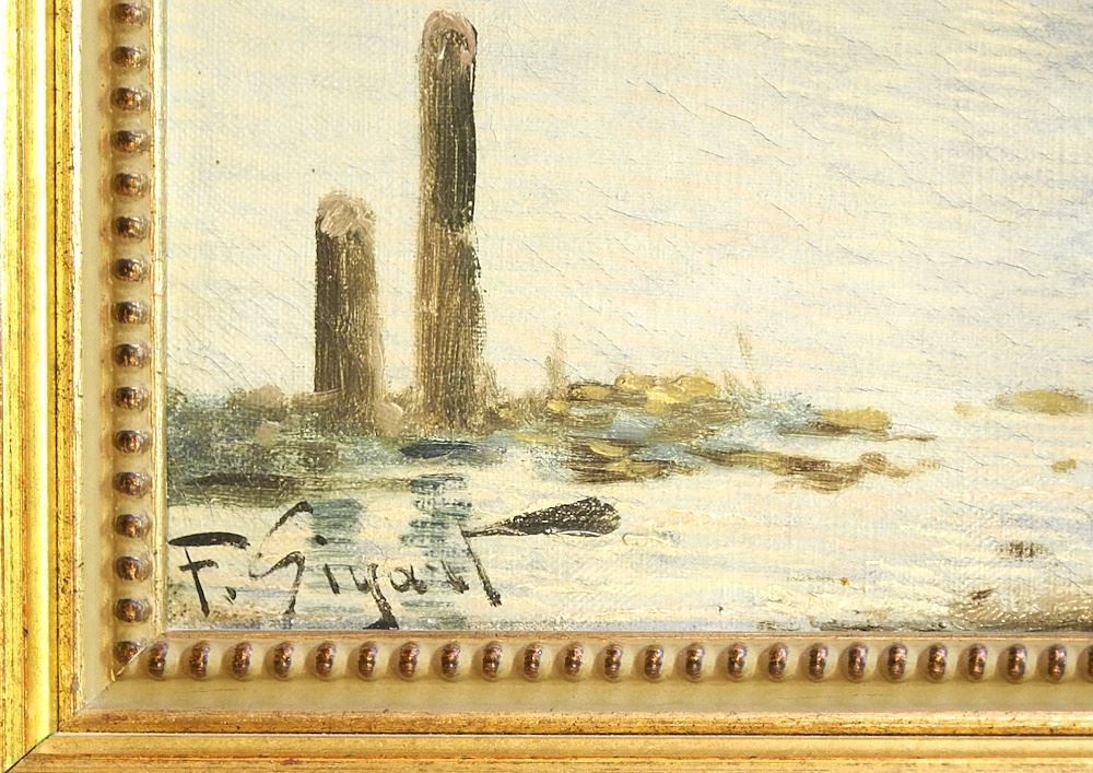 Oil on Canvas signed Indistinctly, 19 x 31 1/2", "Harbour Scene" (possibly Venice).