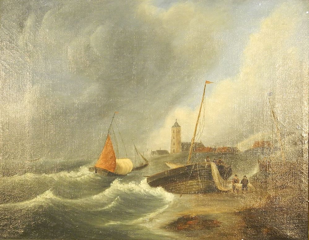 LOT 32 19th C. Oil on Canvas, 16 5/8 x 21", "Storm at High Tide". Estimate: $100 - $200 Sold For: $170 Auction Date: Tuesday, October 17 2023 at 4:00 PM