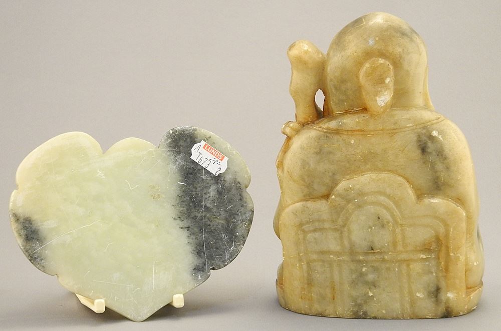 LOT 58 2 Chinese Softstone Carvings: Buddha (6 1/8"H) & Cloud Scroll, 5"W. Estimate: $60 - $100 Auction Date: Tuesday, October 17 2023 at 4:00 PM