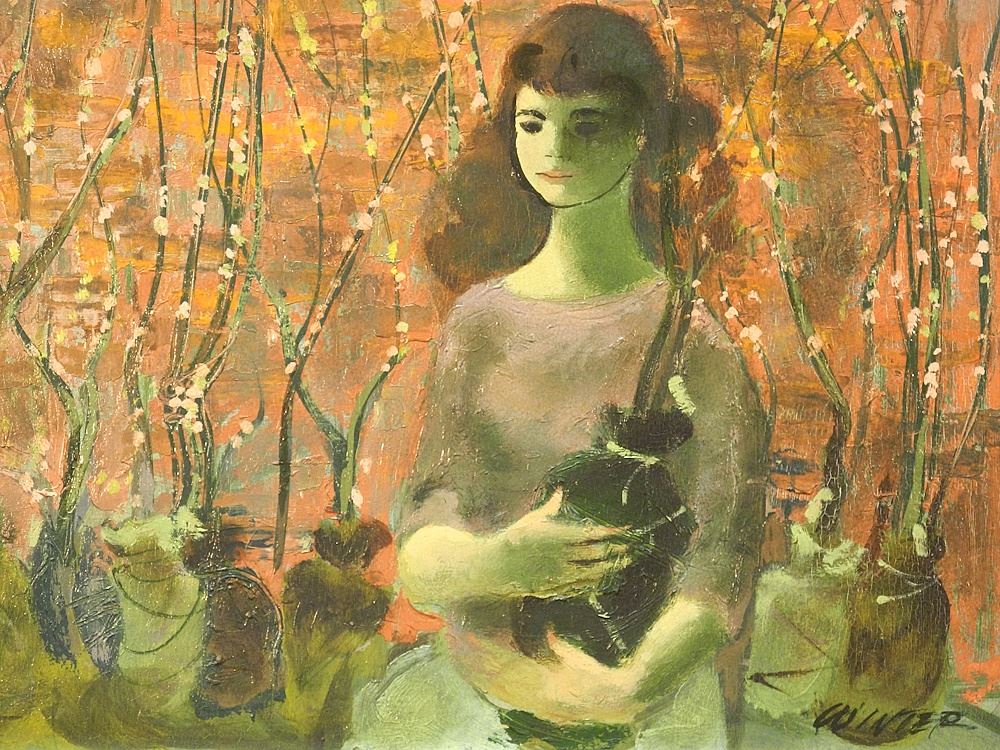 Oil on Board signed Winter(William) 12" x 16", "Flowering Streets".