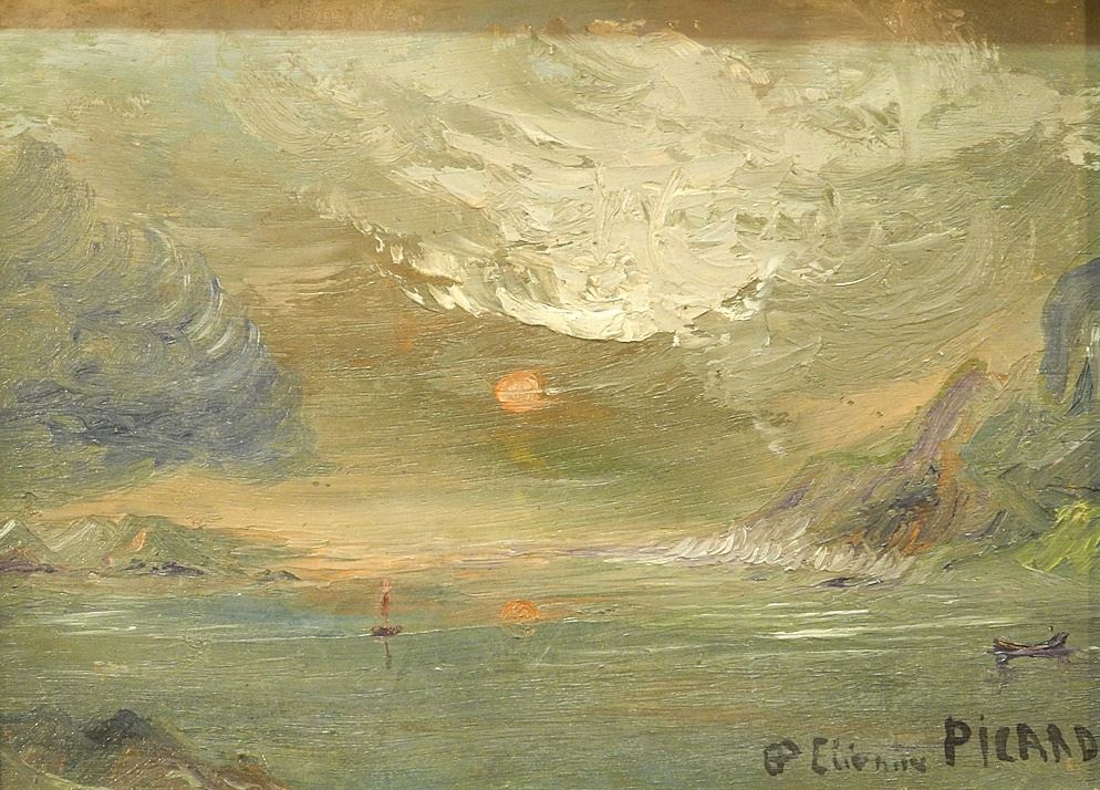 Oil on Board signed Etienne Picard, 5 1/4 x 7 1/4", "Ocean Vista at Sunset".