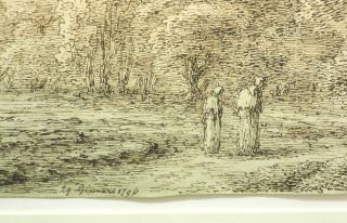Drawing Dated 1796, 6 1/4 x 10 1/2", "Two Figures in Landscape".